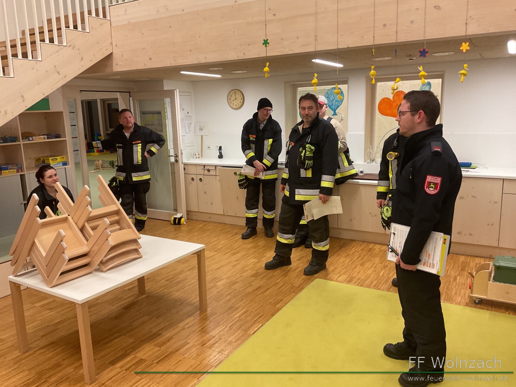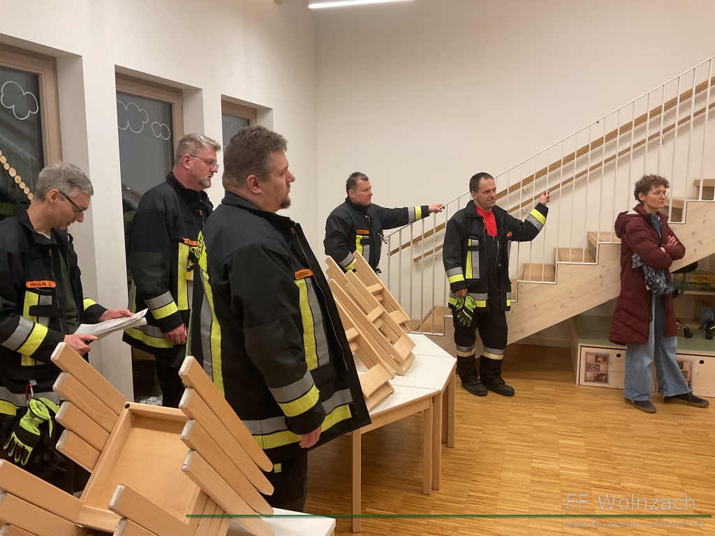 Im zweiten Teil des Abends führte Kindergartenleiterin Monika Merkle durch die Räumlichkeiten. Besonderes Augenmerk lag dabei natürlich auf Sammelplätze, technischen Einrichtungen sowie Flucht- und Rettungswege.
