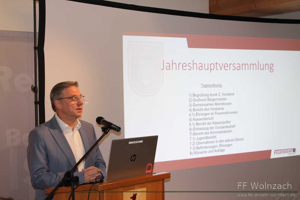 Danach hatte der 1. Bürgermeister Jens Machold das Wort. Er stellte hervor, wie wichtig die Feuerwehren im Gemeindegebiet Wolnzach sind und dankte allen Aktiven für ihren unermüdlichen Einsatz.